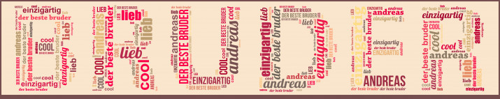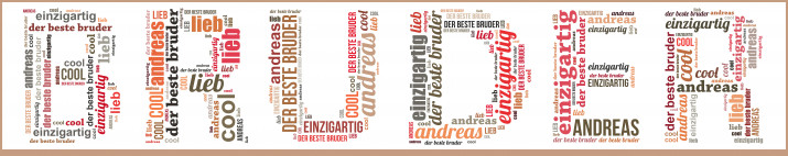 Das Wortbild ist ein außergewöhnliches Leinwandbild aus Ihren Worten. Sie können damit einer Ihnen nahestehenden Person Wünsche oder eine romantische Nachricht auf eine originelle Weise übermitteln. Indem Sie das Bild personalisieren, schaffen Sie ein einzigartiges Geschenk.Personalisierung