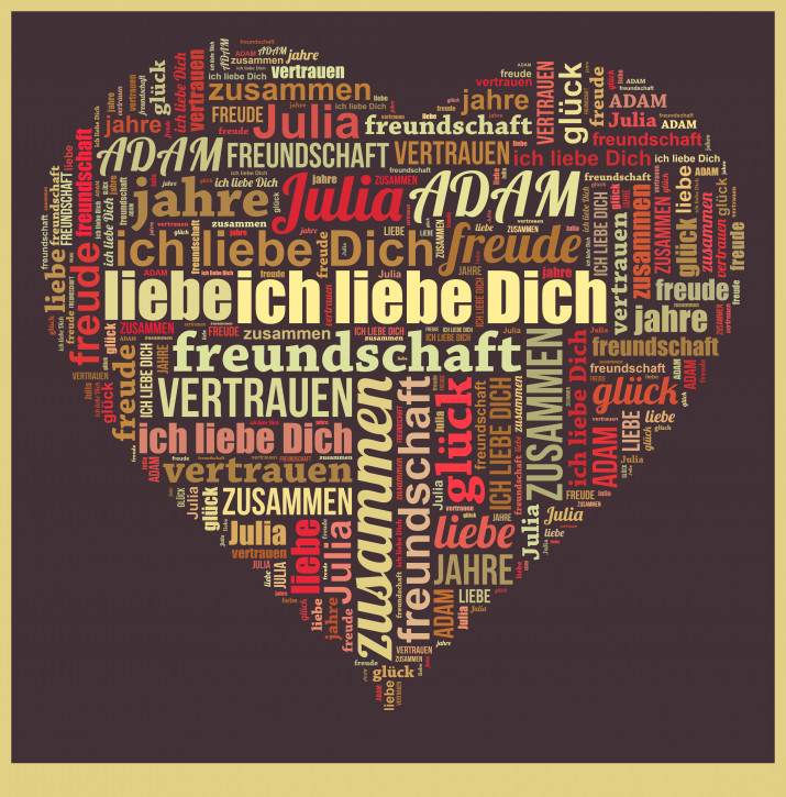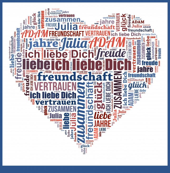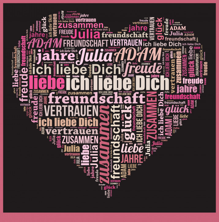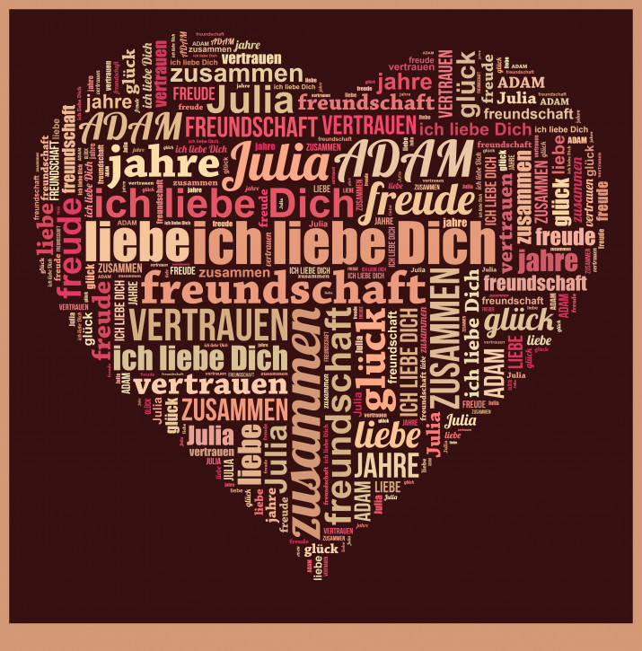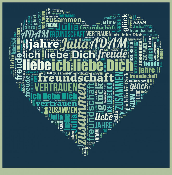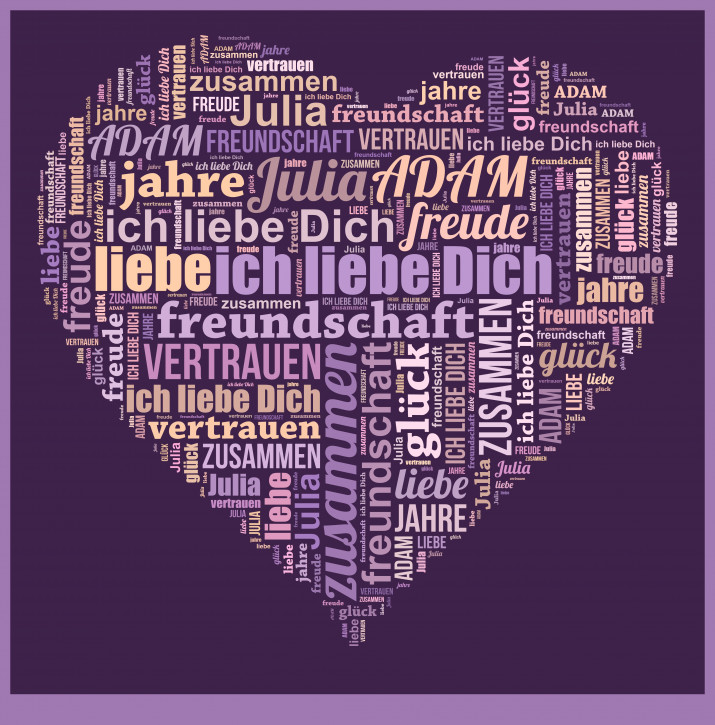 Das Wortbild ist ein außergewöhnliches Leinwandbild aus Ihren Worten. Sie können damit einer Ihnen nahestehenden Person Wünsche oder eine romantische Nachricht auf eine originelle Weise übermitteln. Indem Sie das Bild personalisieren, schaffen Sie ein einzigartiges Geschenk.Personalisierung