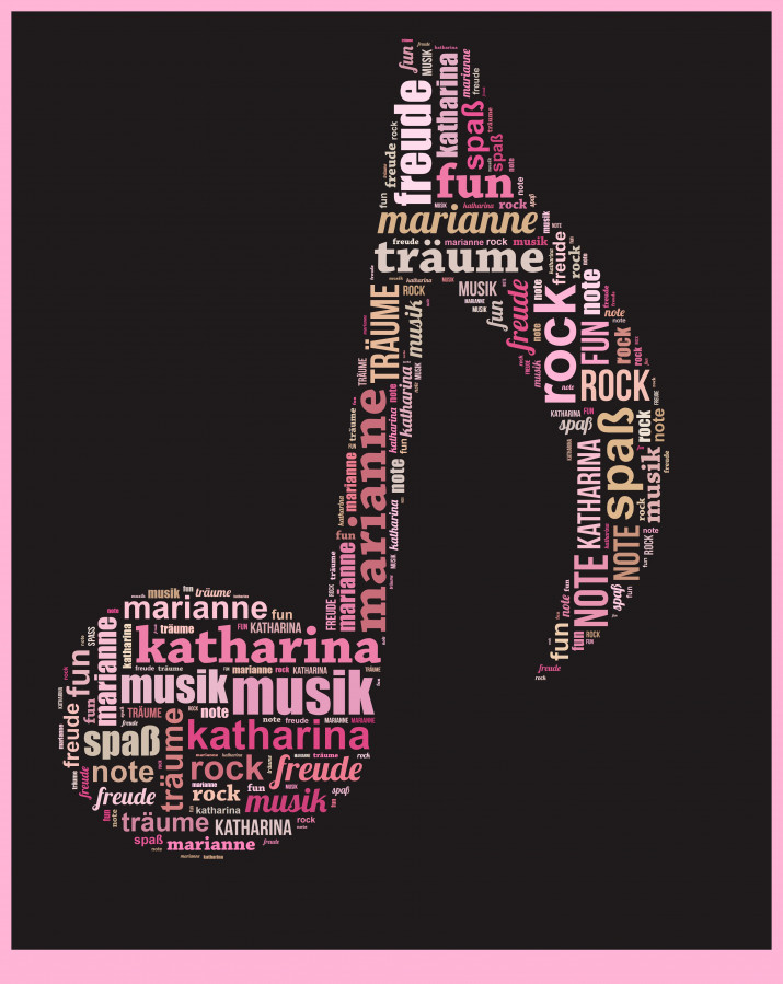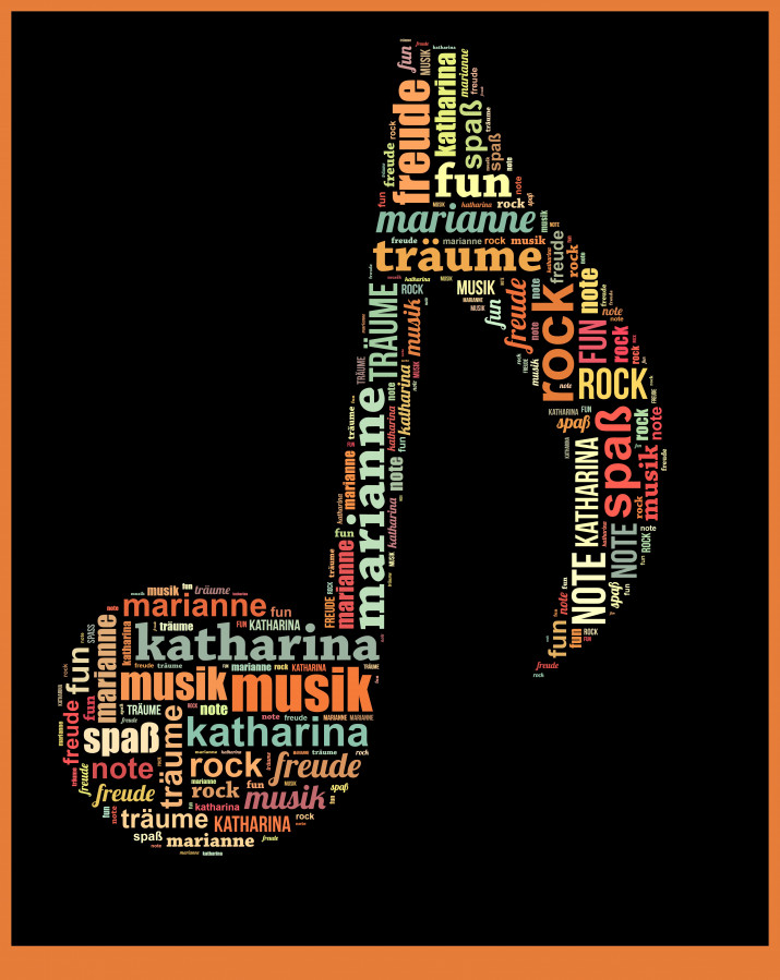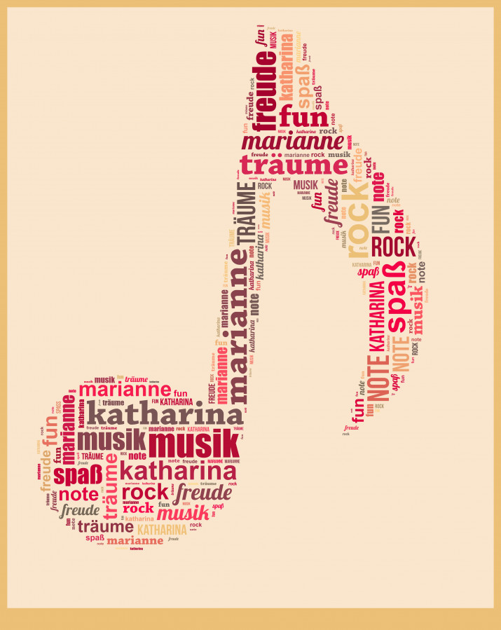 Das Wortbild - Note ist ein perfektes Geschenk für eine Person, die ein Instrument spielt, singt, oder einfach Musik liebt. Mit diesem originellen und untypischen Geschenk werden Sie diese Person bestimmt überraschen!