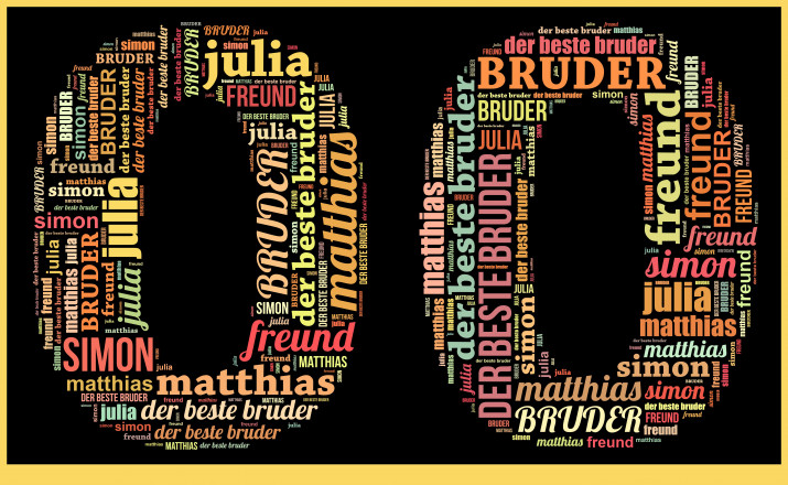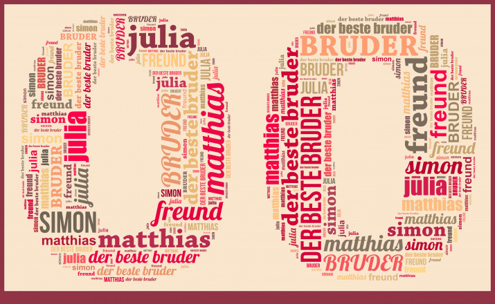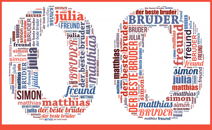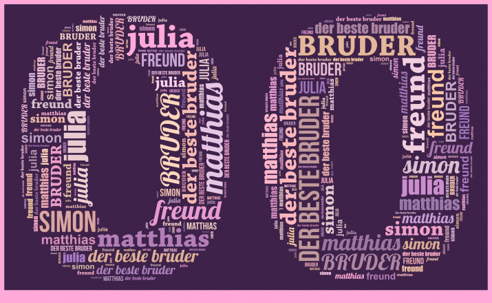 Das Wortbild ist ein außergewöhnliches Leinwandbild aus Ihren Worten. Sie können damit einer Ihnen nahestehenden Person Wünsche oder eine romantische Nachricht auf eine originelle Weise übermitteln. Indem Sie das Bild personalisieren, schaffen Sie ein einzigartiges Geschenk.Personalisierung