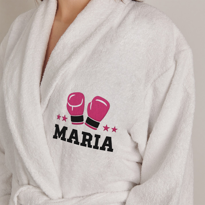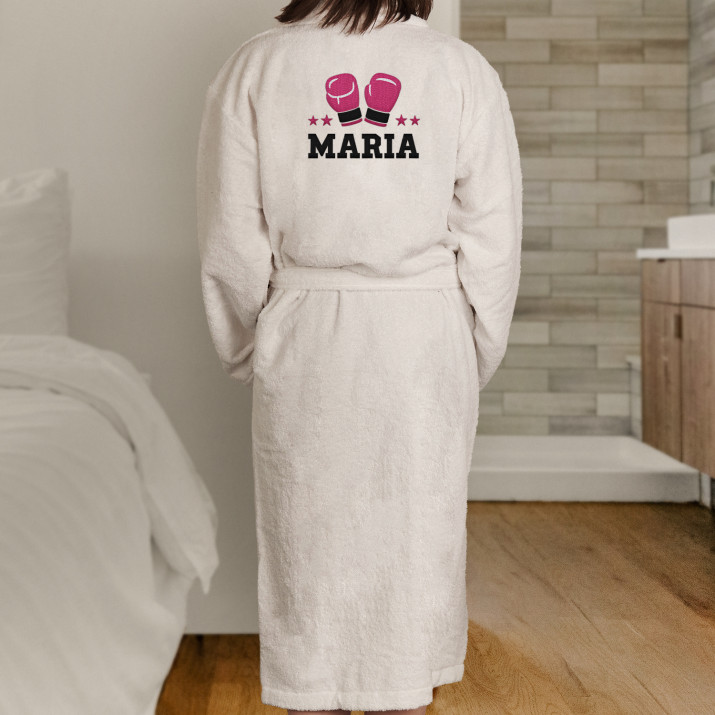 Ein vielseitiger Bademantel in Weiß, aus 100% Frottee-Baumwolle. Bequem, hübsch, weich - bietet den perfekten Komfort, wenn alle Sorgen des Tages vergessen sind und es Zeit ist, sich zu entspannen. Es wärmt auch einen schläfrigen Körper gleich nach dem Aufwachen. Der Bademantel ist mit einer personalisierten Stickerei verziert, die schön aussieht und das Produkt zu einem besonderen Geschenk macht!