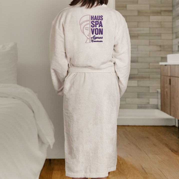 Sie können zwischen zwei Stellen für die Stickerei wählen - auf der Vorderseite oder auf der Rückseite . Bitte wählen Sie eine der Optionen im entsprechenden Personalisierungsfeld aus.Ein vielseitiger Bademantel in Weiß, aus 100% Frottee-Baumwolle. Bequem, hübsch, weich - bietet den perfekten Komfort, wenn alle Sorgen des Tages vergessen sind und es Zeit ist, sich zu entspannen. Es wärmt auch einen schläfrigen Körper gleich nach dem Aufwachen. Der Bademantel ist mit einer personalisierten Stickerei verziert, die schön aussieht und das Produkt zu einem besonderen Geschenk macht!