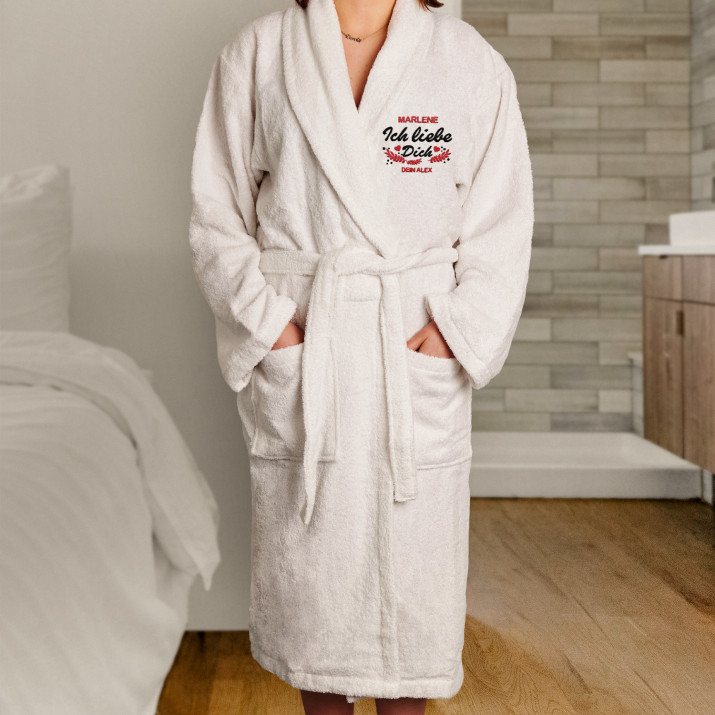 Sie können zwischen zwei Stellen für die Stickerei wählen - auf der Vorderseite oder auf der Rückseite . Bitte wählen Sie eine der Optionen im entsprechenden Personalisierungsfeld aus.Ein vielseitiger Bademantel in Weiß, aus 100% Frottee-Baumwolle. Bequem, hübsch, weich - bietet den perfekten Komfort, wenn alle Sorgen des Tages vergessen sind und es Zeit ist, sich zu entspannen. Es wärmt auch einen schläfrigen Körper gleich nach dem Aufwachen. Der Bademantel ist mit einer personalisierten Stickerei verziert, die schön aussieht und das Produkt zu einem besonderen Geschenk macht!
