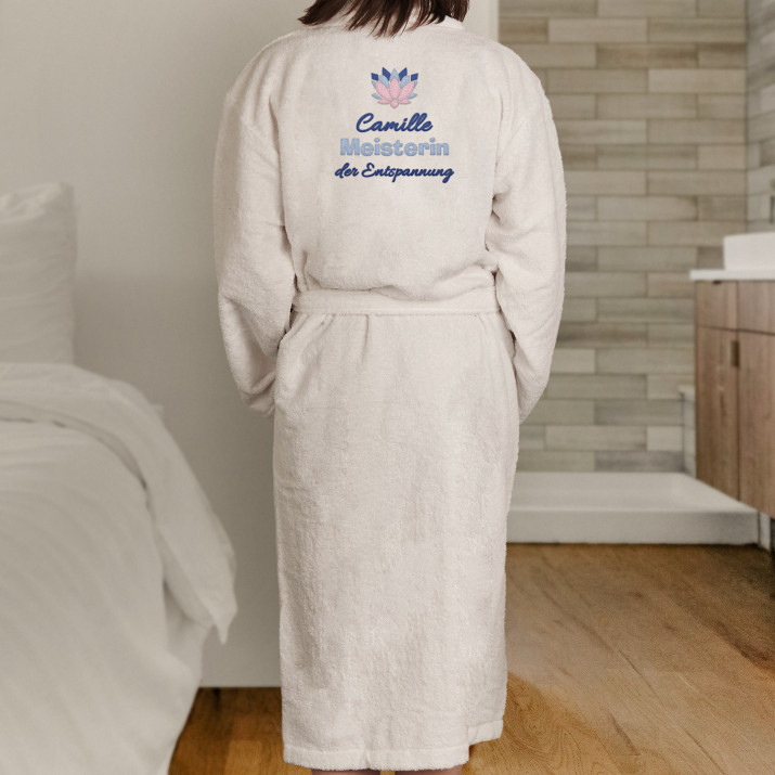 Ein vielseitiger Bademantel in Weiß, aus 100% Frottee-Baumwolle. Bequem, hübsch, weich - bietet den perfekten Komfort, wenn alle Sorgen des Tages vergessen sind und es Zeit ist, sich zu entspannen. Es wärmt auch einen schläfrigen Körper gleich nach dem Aufwachen. Der Bademantel ist mit einer personalisierten Stickerei verziert, die schön aussieht und das Produkt zu einem besonderen Geschenk macht!