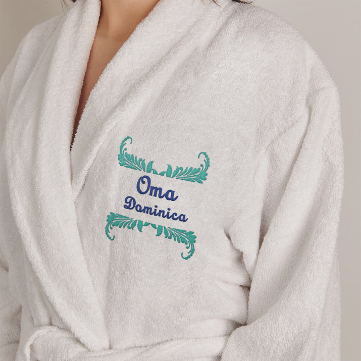 Sie können zwischen zwei Stellen für die Stickerei wählen - auf der Vorderseite oder auf der Rückseite . Bitte wählen Sie eine der Optionen im entsprechenden Personalisierungsfeld aus.Ein vielseitiger Bademantel in Weiß, aus 100% Frottee-Baumwolle. Bequem, hübsch, weich - bietet den perfekten Komfort, wenn alle Sorgen des Tages vergessen sind und es Zeit ist, sich zu entspannen. Es wärmt auch einen schläfrigen Körper gleich nach dem Aufwachen. Der Bademantel ist mit einer personalisierten Stickerei verziert, die schön aussieht und das Produkt zu einem besonderen Geschenk macht!