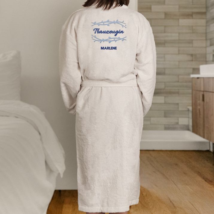 Sie können zwischen zwei Stellen für die Stickerei wählen - auf der Vorderseite oder auf der Rückseite . Bitte wählen Sie eine der Optionen im entsprechenden Personalisierungsfeld aus.Ein vielseitiger Bademantel in Weiß, aus 100% Frottee-Baumwolle. Bequem, hübsch, weich - bietet den perfekten Komfort, wenn alle Sorgen des Tages vergessen sind und es Zeit ist, sich zu entspannen. Es wärmt auch einen schläfrigen Körper gleich nach dem Aufwachen. Der Bademantel ist mit einer personalisierten Stickerei verziert, die schön aussieht und das Produkt zu einem besonderen Geschenk macht!