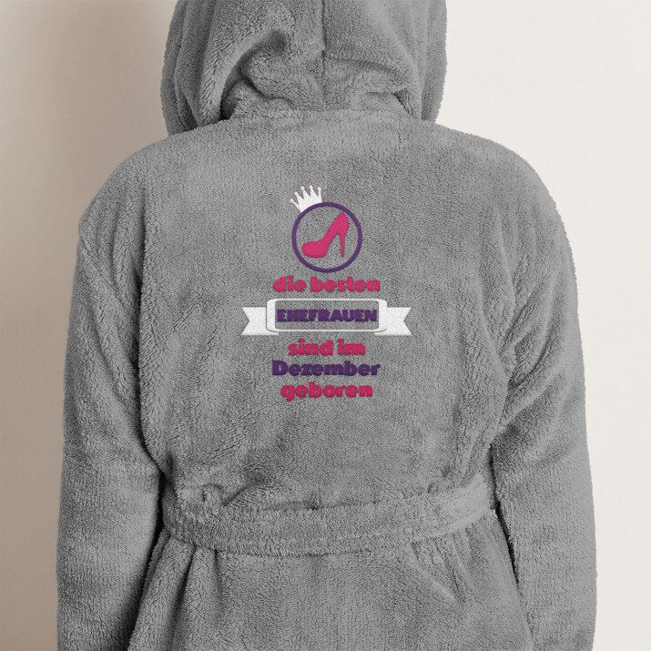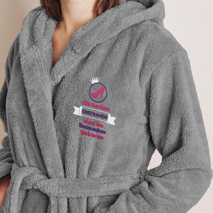 Die Stickerei auf dem Bademantel entsteht mithilfe einer professionellen Computer-Stickmaschine. Wir verwenden die Stickmaschine der japanischen Firma HappyJapan Inc., die einer der erfahrensten Hersteller von dieser Art von Maschinen weltweit ist! Dank der hochklassigen Maschine und unseren kreativen Grafikern schaffen wir eine einzigartige Stickerei mit präziser Wiedergabe des Projekts - sogar in der kleinsten Naht sichtbar. Die Muster auf unseren Decken sind außergewöhnlich schön und langlebig.