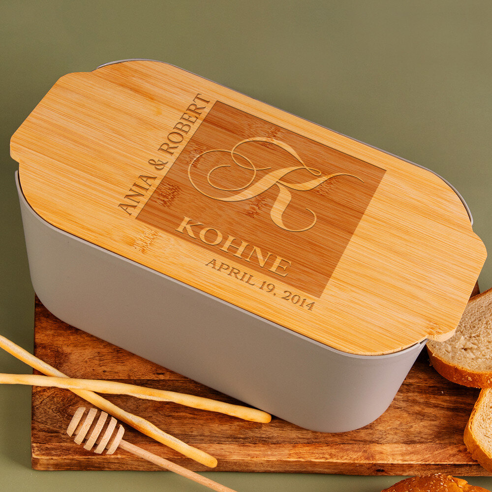 Ein Brotkasten in modernem Design, in einer stilvollen Farbe! Auf jeden Fall ein sehr praktisches Geschenk für einen geliebten Menschen, das zu jeder Einrichtung passt. Die Farbe und das Design des Brotkastens machen ihn zu einem echten Hingucker mit elegantem Touch. Der Brotkasten hat einen brettförmigen Verschluss aus Bambusholz. Das ganze Set sieht in der Küche sehr beeindruckend aus. Das personalisierte Design auf dem Brett wird vom Beschenkten mit Sicherheit bewundert werden!