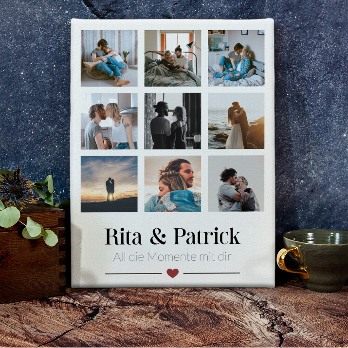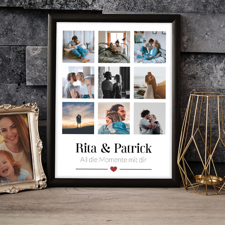 Eine wunderschöne Komposition Ihrer Fotos mit ein paar Worten direkt aus dem Herzen und Bildunterschriften. Das perfekte Geschenk für diejenigen, mit denen Sie viele Erinnerungen haben. Wählen Sie einfach Ihre Lieblingsfotos der Momente aus, die für Sie am wichtigsten sind, und Sie erstellen ein Andenken, das für immer beim Empfänger bleibt. Es ist auch eine äußerst originelle und effektive Dekoration für die Wohnung.Ausführung