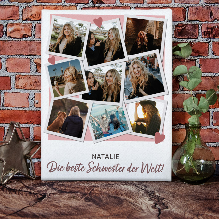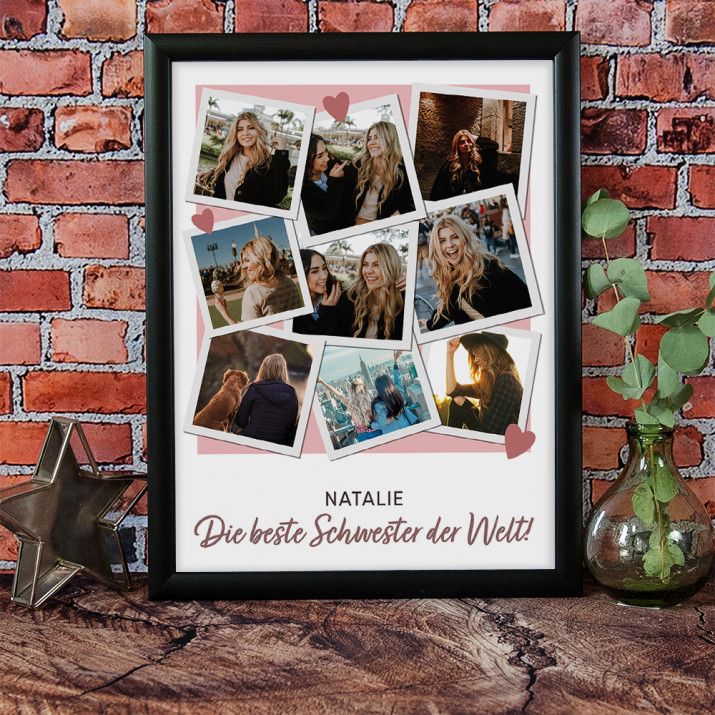 Eine wunderschöne Komposition Ihrer Fotos mit ein paar Worten direkt aus dem Herzen und Bildunterschriften. Das perfekte Geschenk für diejenigen, mit denen Sie viele Erinnerungen haben. Wählen Sie einfach Ihre Lieblingsfotos der Momente aus, die für Sie am wichtigsten sind, und Sie erstellen ein Andenken, das für immer beim Empfänger bleibt. Es ist auch eine äußerst originelle und effektive Dekoration für die Wohnung.Ausführung