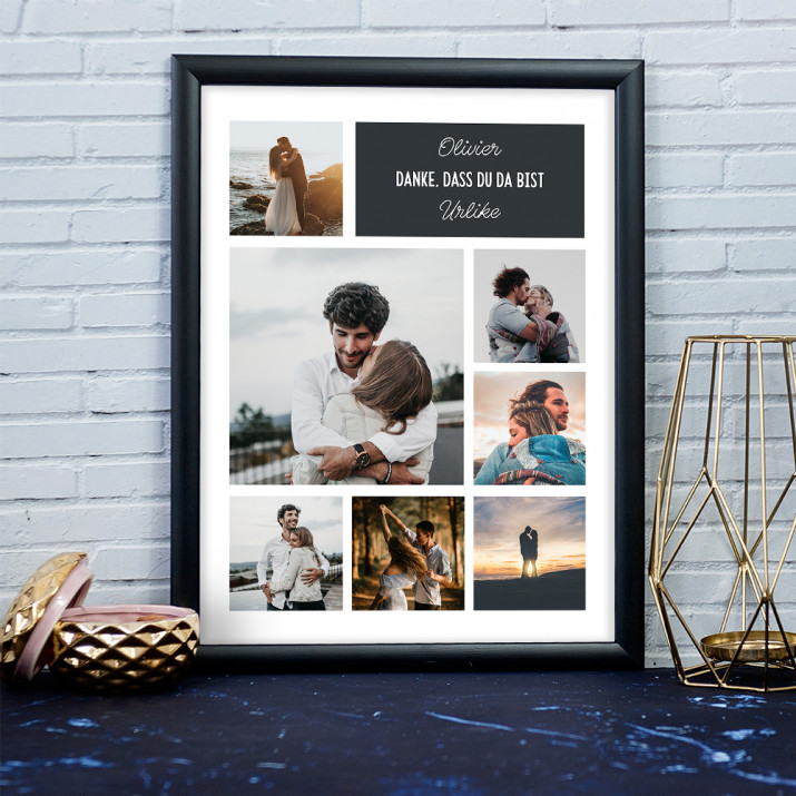 Eine wunderschöne Komposition Ihrer Fotos mit ein paar Worten direkt aus dem Herzen und Bildunterschriften. Das perfekte Geschenk für diejenigen, mit denen Sie viele Erinnerungen haben. Wählen Sie einfach Ihre Lieblingsfotos der Momente aus, die für Sie am wichtigsten sind, und Sie erstellen ein Andenken, das für immer beim Empfänger bleibt. Es ist auch eine äußerst originelle und effektive Dekoration für die Wohnung.Ausführung