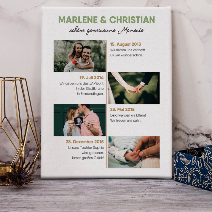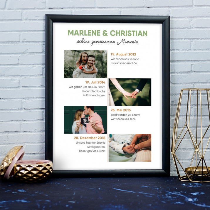 Eine wunderschöne Komposition Ihrer Fotos mit ein paar Worten direkt aus dem Herzen und Bildunterschriften. Das perfekte Geschenk für diejenigen, mit denen Sie viele Erinnerungen haben. Wählen Sie einfach Ihre Lieblingsfotos der Momente aus, die für Sie am wichtigsten sind, und Sie erstellen ein Andenken, das für immer beim Empfänger bleibt. Es ist auch eine äußerst originelle und effektive Dekoration für die Wohnung.Ausführung