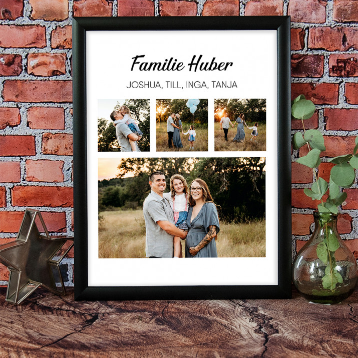 Eine wunderschöne Komposition Ihrer Fotos mit ein paar Worten direkt aus dem Herzen und Bildunterschriften. Das perfekte Geschenk für diejenigen, mit denen Sie viele Erinnerungen haben. Wählen Sie einfach Ihre Lieblingsfotos der Momente aus, die für Sie am wichtigsten sind, und Sie erstellen ein Andenken, das für immer beim Empfänger bleibt. Es ist auch eine äußerst originelle und effektive Dekoration für die Wohnung.Ausführung