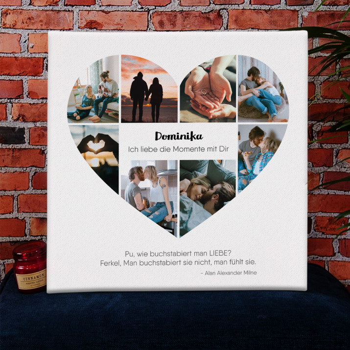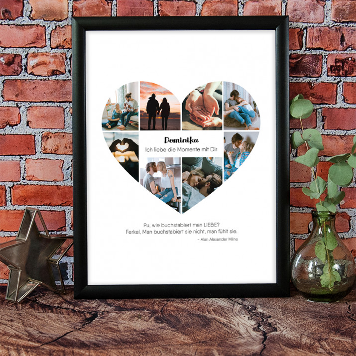 Eine wunderschöne Komposition Ihrer Fotos mit ein paar Worten direkt aus dem Herzen und Bildunterschriften. Das perfekte Geschenk für diejenigen, mit denen Sie viele Erinnerungen haben. Wählen Sie einfach Ihre Lieblingsfotos der Momente aus, die für Sie am wichtigsten sind, und Sie erstellen ein Andenken, das für immer beim Empfänger bleibt. Es ist auch eine äußerst originelle und effektive Dekoration für die Wohnung.Ausführung