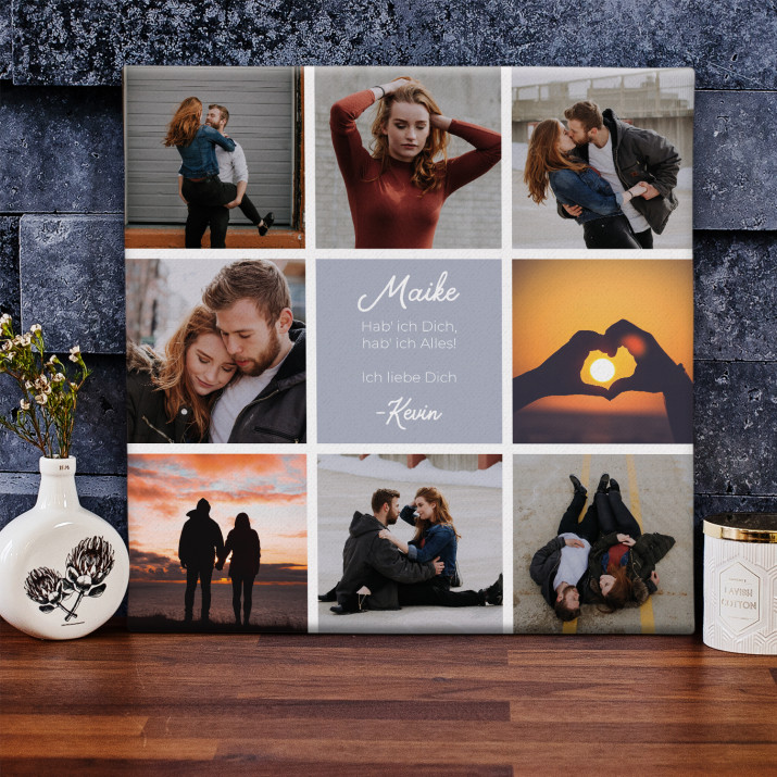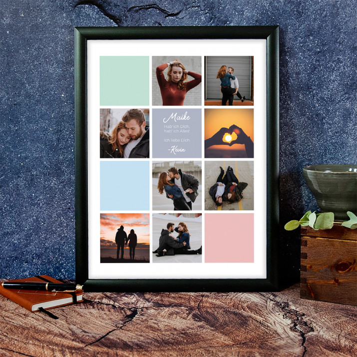 Eine wunderschöne Komposition Ihrer Fotos mit ein paar Worten direkt aus dem Herzen und Bildunterschriften. Das perfekte Geschenk für diejenigen, mit denen Sie viele Erinnerungen haben. Wählen Sie einfach Ihre Lieblingsfotos der Momente aus, die für Sie am wichtigsten sind, und Sie erstellen ein Andenken, das für immer beim Empfänger bleibt. Es ist auch eine äußerst originelle und effektive Dekoration für die Wohnung.Ausführung