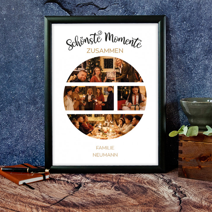 Eine wunderschöne Komposition Ihrer Fotos mit ein paar Worten direkt aus dem Herzen und Bildunterschriften. Das perfekte Geschenk für diejenigen, mit denen Sie viele Erinnerungen haben. Wählen Sie einfach Ihre Lieblingsfotos der Momente aus, die für Sie am wichtigsten sind, und Sie erstellen ein Andenken, das für immer beim Empfänger bleibt. Es ist auch eine äußerst originelle und effektive Dekoration für die Wohnung.Ausführung