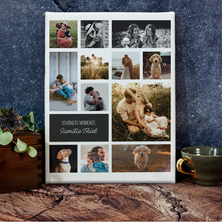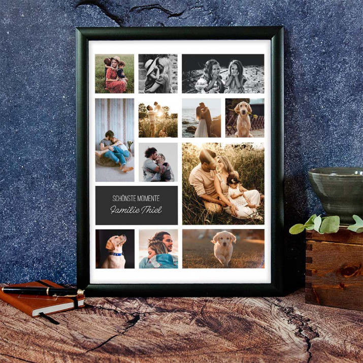 Eine wunderschöne Komposition Ihrer Fotos mit ein paar Worten direkt aus dem Herzen und Bildunterschriften. Das perfekte Geschenk für diejenigen, mit denen Sie viele Erinnerungen haben. Wählen Sie einfach Ihre Lieblingsfotos der Momente aus, die für Sie am wichtigsten sind, und Sie erstellen ein Andenken, das für immer beim Empfänger bleibt. Es ist auch eine äußerst originelle und effektive Dekoration für die Wohnung.