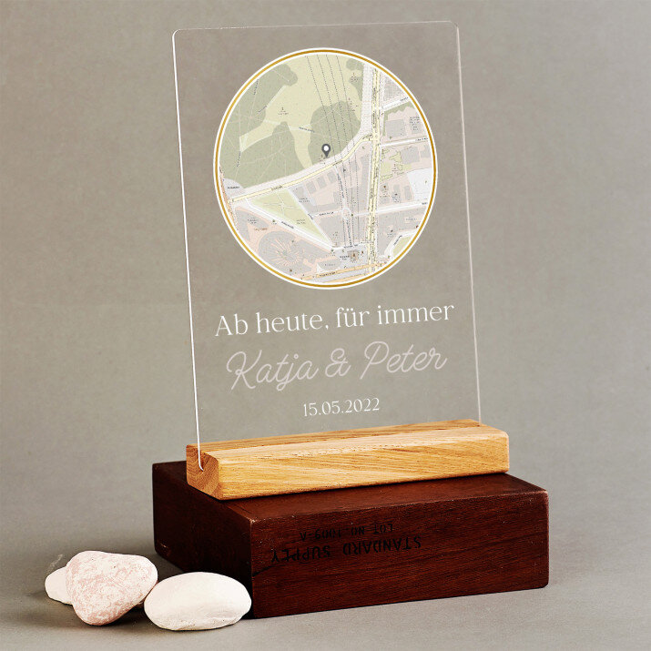 Manchmal reicht es aus, die Augen zu schließen, um sich an Orte zu begeben, die uns viel bedeuten. Wir teilen sie normalerweise mit einem geliebten Menschen, der Familie oder Freunden. Wir verbinden sie mit besonderen und wichtigsten Momenten. Diese geteilten Erinnerungen können symbolisch auf ein ungewöhnliches Geschenk übertragen werden, das einem geliebten Menschen Freude bereiten wird.Dank des von Ihnen angegebenen Ortes eignet sich das Geschenk perfekt für eine Hochzeit, einen Hochzeitstag oder einen Valentinstag. Es eignet sich auch perfekt als Mitbringsel für Freunde. Die ausgewählte Stelle (eine oder mehrere - je nach gewähltem Muster) , ergänzt mit personalisierten Elementen, sieht äußerst elegant aus. So ein Geschenk ist einzigartig!