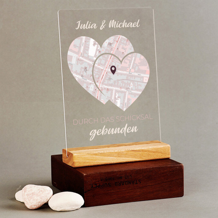 Manchmal reicht es aus, die Augen zu schließen, um sich an Orte zu begeben, die uns viel bedeuten. Wir teilen sie normalerweise mit einem geliebten Menschen, der Familie oder Freunden. Wir verbinden sie mit besonderen und wichtigsten Momenten. Diese geteilten Erinnerungen können symbolisch auf ein ungewöhnliches Geschenk übertragen werden, das einem geliebten Menschen Freude bereiten wird.Dank des von Ihnen angegebenen Ortes eignet sich das Geschenk perfekt für eine Hochzeit, einen Hochzeitstag oder einen Valentinstag. Es eignet sich auch perfekt als Mitbringsel für Freunde. Die ausgewählte Stelle (eine oder mehrere - je nach gewähltem Muster) , ergänzt mit personalisierten Elementen, sieht äußerst elegant aus. So ein Geschenk ist einzigartig!