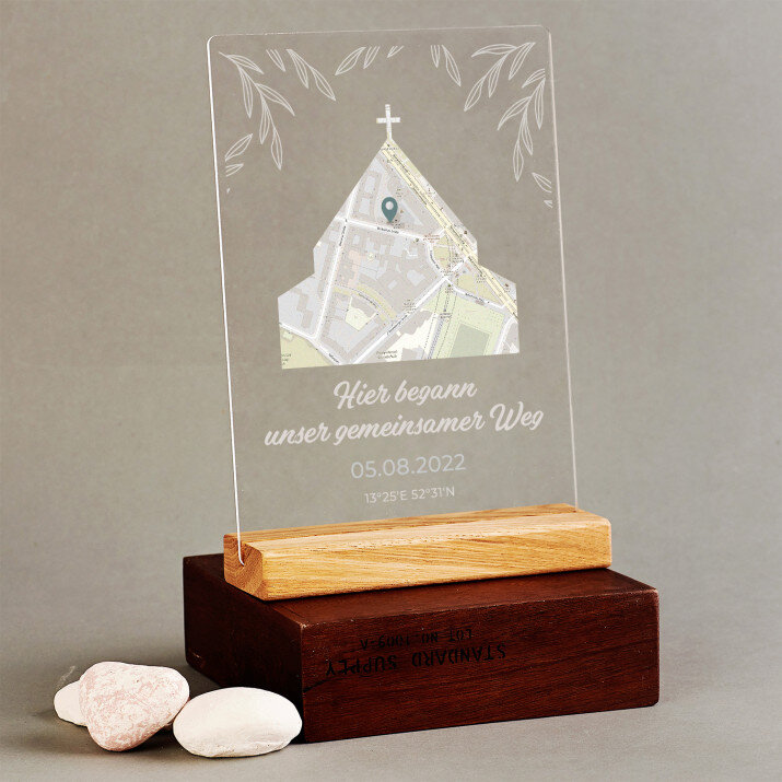 Dank des von Ihnen angegebenen Ortes eignet sich das Geschenk perfekt für eine Hochzeit, einen Hochzeitstag oder einen Valentinstag. Es eignet sich auch perfekt als Mitbringsel für Freunde. Die ausgewählte Stelle (eine oder mehrere - je nach gewähltem Muster) , ergänzt mit personalisierten Elementen, sieht äußerst elegant aus. So ein Geschenk ist einzigartig!