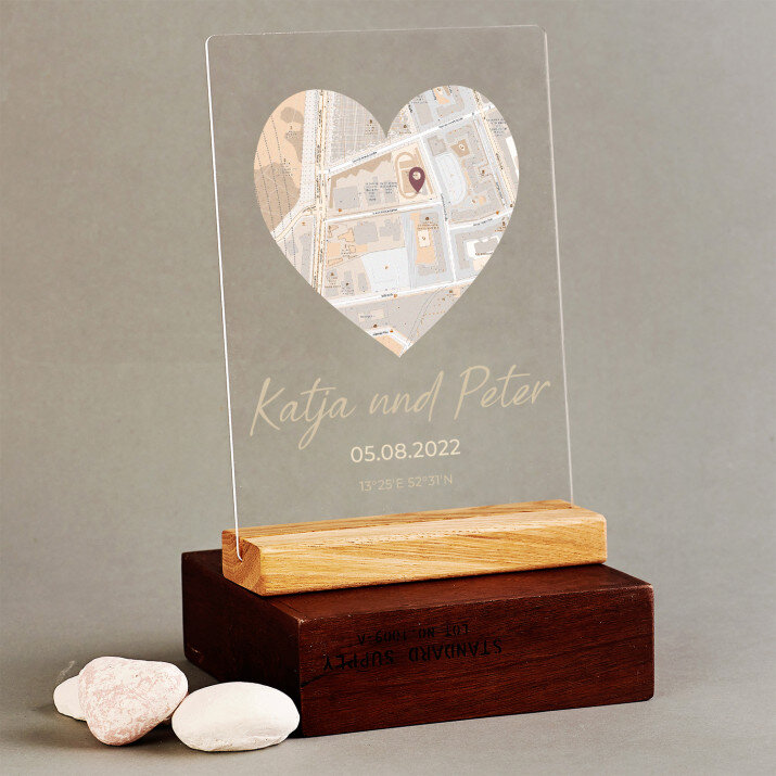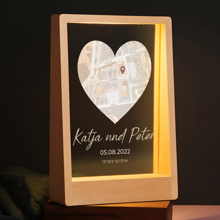 Manchmal reicht es aus, die Augen zu schließen, um sich an Orte zu begeben, die uns viel bedeuten. Wir teilen sie normalerweise mit einem geliebten Menschen, der Familie oder Freunden. Wir verbinden sie mit besonderen und wichtigsten Momenten. Diese geteilten Erinnerungen können symbolisch auf ein ungewöhnliches Geschenk übertragen werden, das einem geliebten Menschen Freude bereiten wird.Dank des von Ihnen angegebenen Ortes eignet sich das Geschenk perfekt für eine Hochzeit, einen Hochzeitstag oder einen Valentinstag. Es eignet sich auch perfekt als Mitbringsel für Freunde. Die ausgewählte Stelle (eine oder mehrere - je nach gewähltem Muster) , ergänzt mit personalisierten Elementen, sieht äußerst elegant aus. So ein Geschenk ist einzigartig!