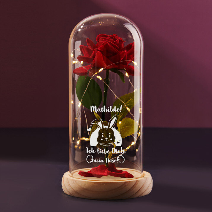 Eine ewige Kristallrose unter einer Glaskuppel ist ein einzigartiges Geschenk, das zu vielen Anlässen verschenkt werden kann. Ein schönes und nachhaltiges Geschenk, das über viele Jahre hinweg ein perfektes Andenken sein wird! Das Hauptmerkmal dieses Produkts ist die robuste, transparente Kuppel, die die zarte Rose schützt und ihr ein elegantes Aussehen verleiht. Der Ständer, aus hochwertigem Kunststoff gefertigt, sorgt für Stabilität und Haltbarkeit der gesamten Konstruktion.Außerdem schaffen die LED-Leuchten im Inneren eine romantische Atmosphäre. Die Oberfläche der Glaskuppel kann zusätzlich mit Initialen, Namen oder einer kurzen Nachricht Ihrer Wahl eingraviert werden, was das Geschenk noch spezieller macht. Die ewige Rose wird in einer Geschenkbox geliefert.