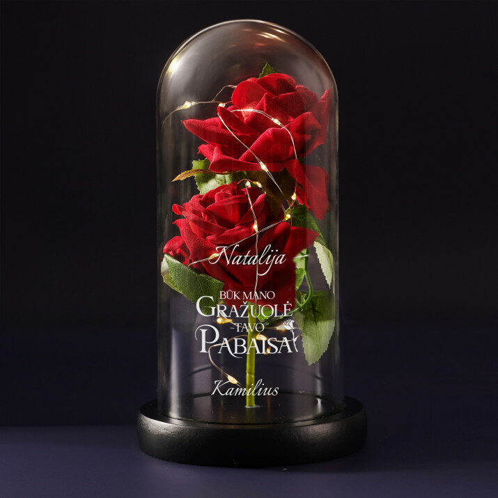 Außerdem schaffen die LED-Leuchten im Inneren eine romantische Atmosphäre. Die Oberfläche der Glaskuppel kann zusätzlich mit Initialen, Namen oder einer kurzen Nachricht Ihrer Wahl eingraviert werden, was das Geschenk noch spezieller macht. Die ewige Rose wird in einer Geschenkbox geliefert.