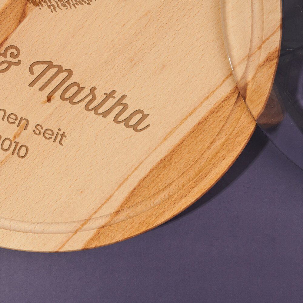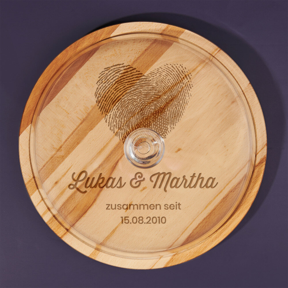 Das runde Schneidebrett besteht aus Buchenholz, wodurch es elegant aussieht und in jede Küche passt. Die hochwertige Glasglocke verleiht dem Produkt eine Verfeinerung, und das Ganze ist eine sehr praktische und effektive Ergänzung für die Küche. Das Brett zeichnet sich durch eine solide Verarbeitung aus, ist widerstandsfähig gegen Beschädigungen und mit einer personalisierten Gravur verziert. Mit einem solchen universellen Produkt können Sie verschiedene Köstlichkeiten wie Obst oder Kuchen aufbewahren und servieren.Abmessungen: