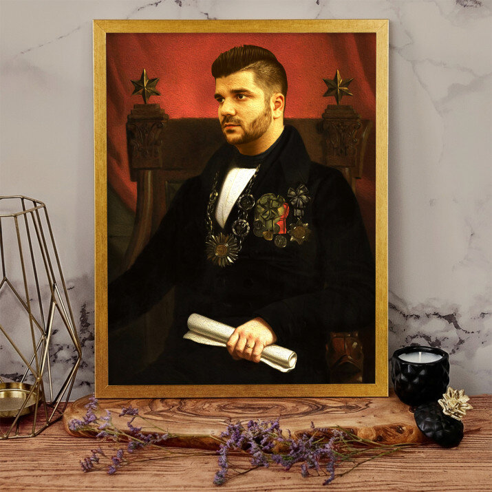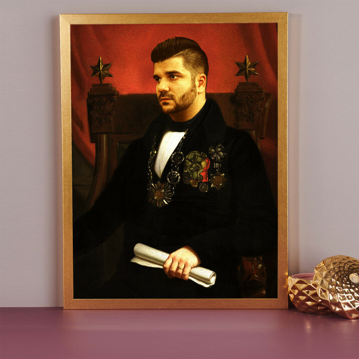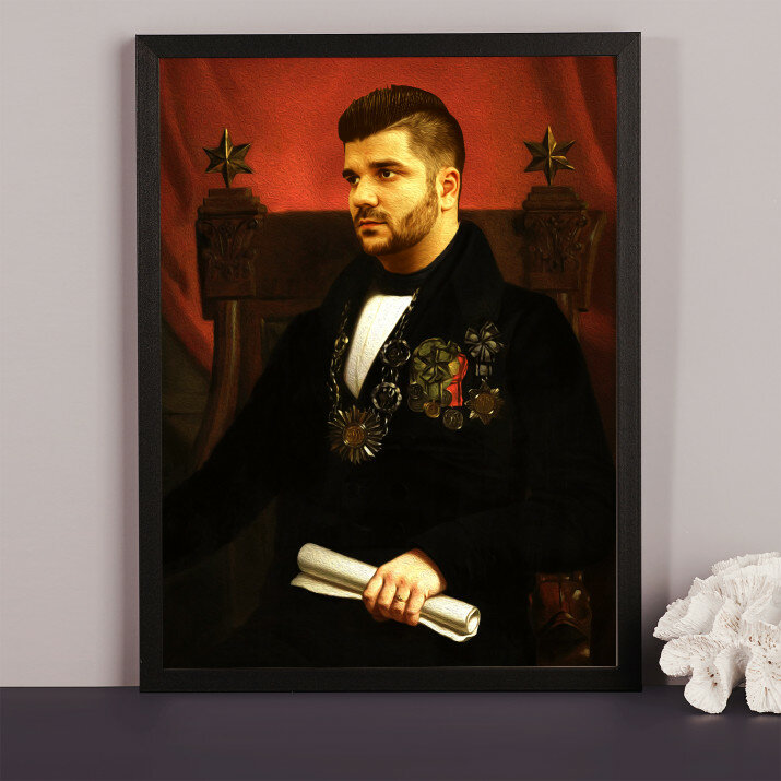Jetzt auf dem Königsporträt sein! Das ist ein einzigartiges Bild, das wir von Ihrem Foto erstellen. Ein besonderes Geschenk, das einem geliebten Menschen das Gefühl geben kann, ein echter Herrscher zu sein! Alles, was wir brauchen, ist ein Foto von guter Qualität, damit unser Grafiker ein Porträt in dem von Ihnen gewünschten Stil anfertigen kann. Das so entstandene Geschenk wird Ihre Liebsten sicher beeindrucken!AUSFÜHRUNG