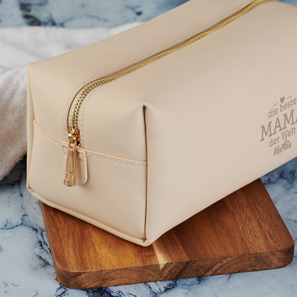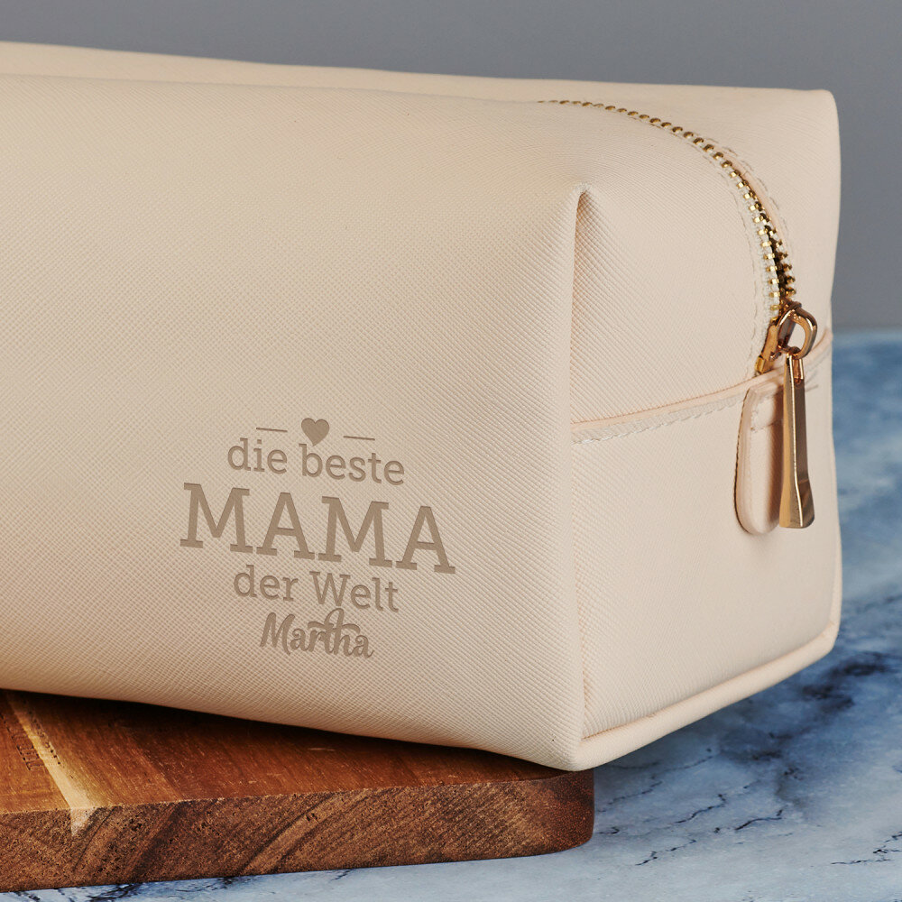 Die Gravur auf der Kosmetiktasche wird mit moderner Lasertechnik hergestellt. Wir haben einen Laser von der besten Trotec Laser Firma in Europa. Der Lasergravierer ermöglicht eine Genauigkeit von hundertstel Millimeter. Die Gravur ist langlebig und bleibt auch nach längerem Gebrauch intakt und sehr gut sichtbar.
