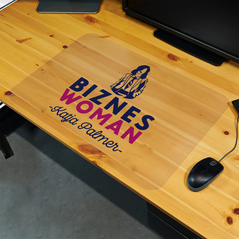 Schützende Schreibtischunterlage aus hochwertigem nicht reflektierendem Material. Es schützt die Möbel vor Schäden durch den täglichen Gebrauch und vor dauerhafter Verschmutzung. Der robuste Untersetzer ist unempfindlich gegenüber heißen Getränken und liegt dank seiner abgerundeten Ecken perfekt auf der Tischplatte und ohne Verletzungsgefahr. Die Unterlage ist antiallergisch, ungiftig, flammhemmend und geruchsneutral. Das Produkt ist aus PVC gefertigt, matt transparent.Abmessungen: 40 x 60 cm