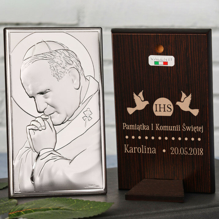 Erstkommunion - Dank an die Patentante - Papst - Silbernes Bild mit Gravur