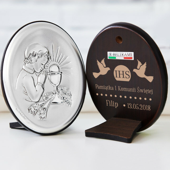 Am Tag deiner Erstkommunion - Junge - Silbernes Bild mit Gravur