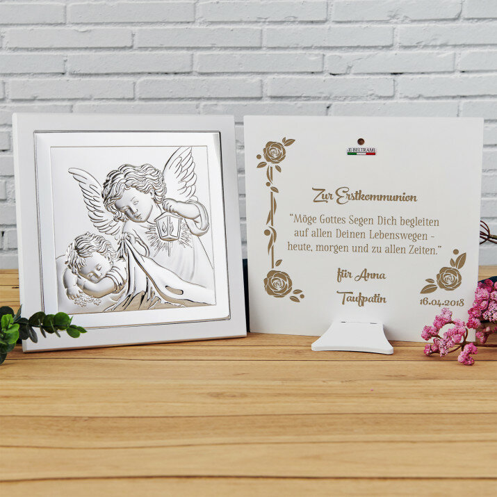 Gottes Segen - Engel mit Laterne - Silbernes Bild mit Gravur