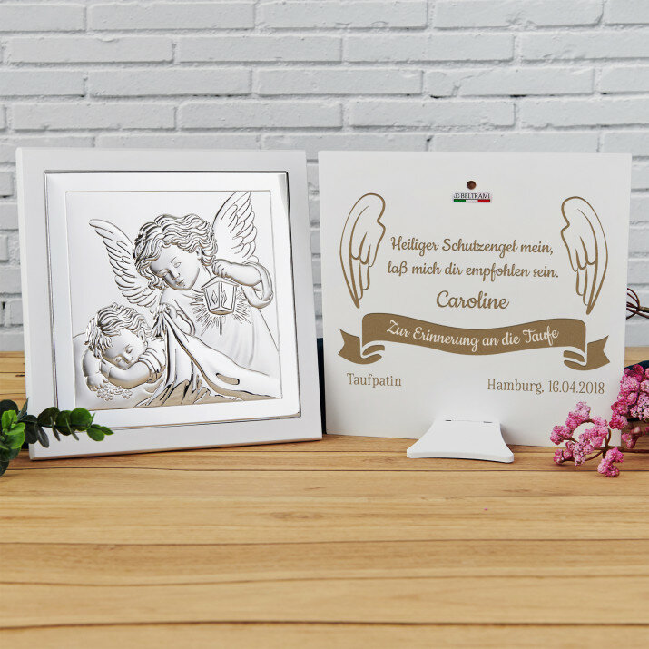 Heiliger Schutzengel 2 - Engel mit Laterne - Silbernes Bild mit Gravur
