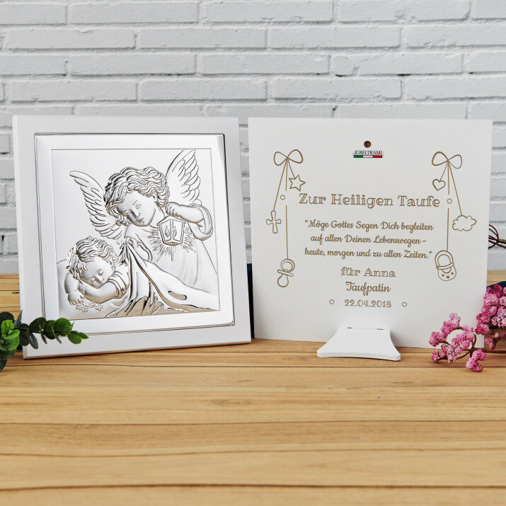 Möge Gottes Segen - Engel mit Laterne - Silbernes Bild mit Gravur