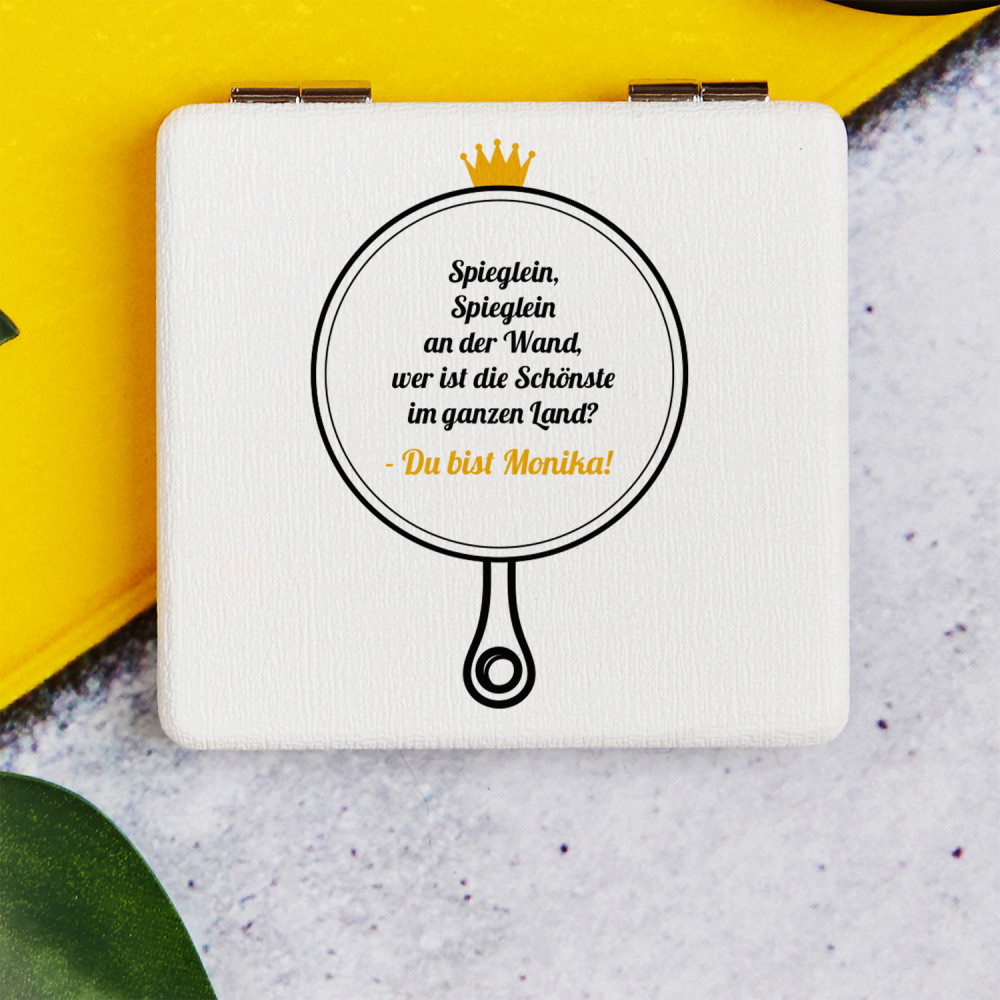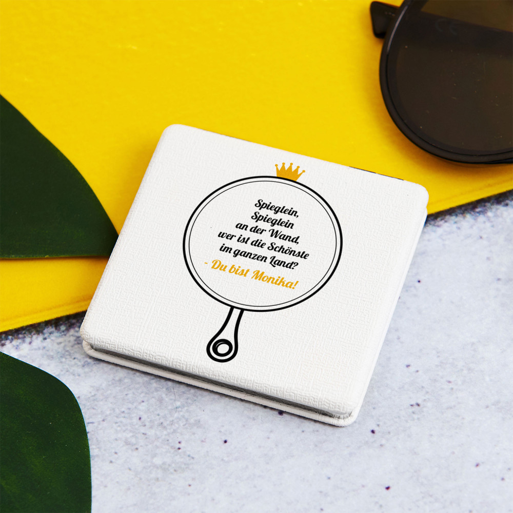 Suchen Sie nach einem kleinen Geschenk für Ihre Frau? Solch ein Taschenspiegel mit einem Aufdruck ist perfekt! Doch jede Frau brauch einen handlichen Spiegel, der in jeder Tasche oder jeden Rucksack passt.