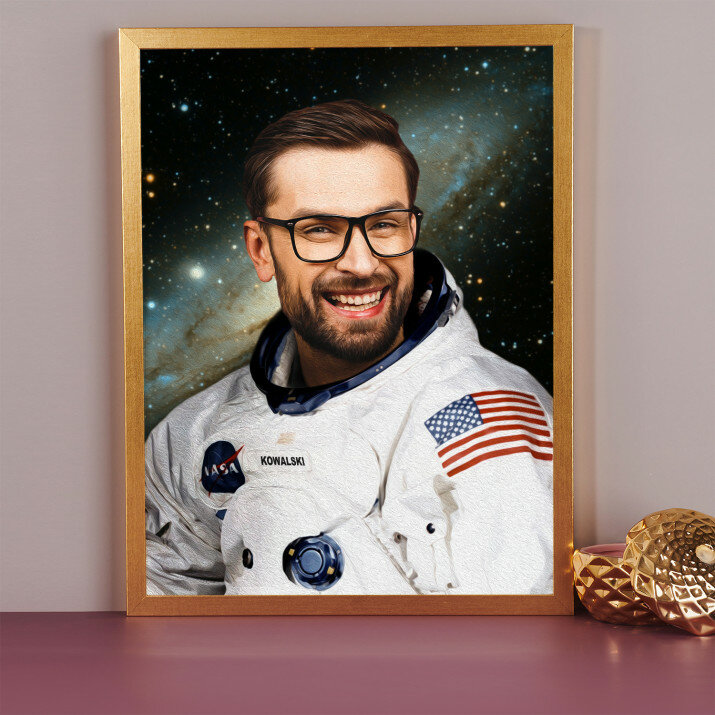 Ein Traum in unserer Geschenksammlung! Sicher kennen Sie jemanden, der heimlich von einem Flug ins All oder einem verrückten und gefährlichen Abenteuer im Wilden Westen träumt. Es wäre schwierig, es sofort zu erfüllen, aber Sie können dem Träumer immer ein wirkungsvolles Porträt geben, das ihn sicherlich glücklich machen wird.