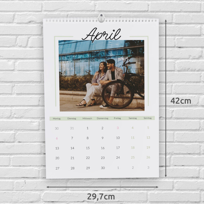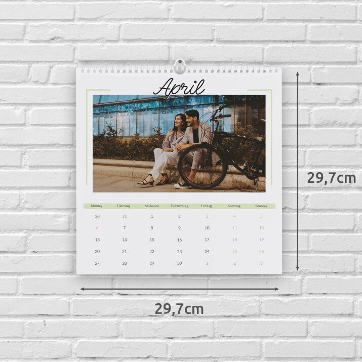 Der Wandkalender mit Ihren Fotos ist ein tolles Geschenk und Andenken an schöne Momente, die jedem in Ihrem Haushalt ein Lächeln ins Gesicht zaubern werden. Durch die persönlichen Bilder wird es in jedem Monat ein Augenschmaus sein! Dies ist eine einzigartige Dekoration für Ihr Zuhause, die Sie z. B. Ihren Eltern oder Freunden schenken können. Der Kalender ist ein schönes Geschenk oder eine phantasievolle Ergänzung zu etwas Größerem. Passt zu jedem Anlass!AUSFÜHRUNG