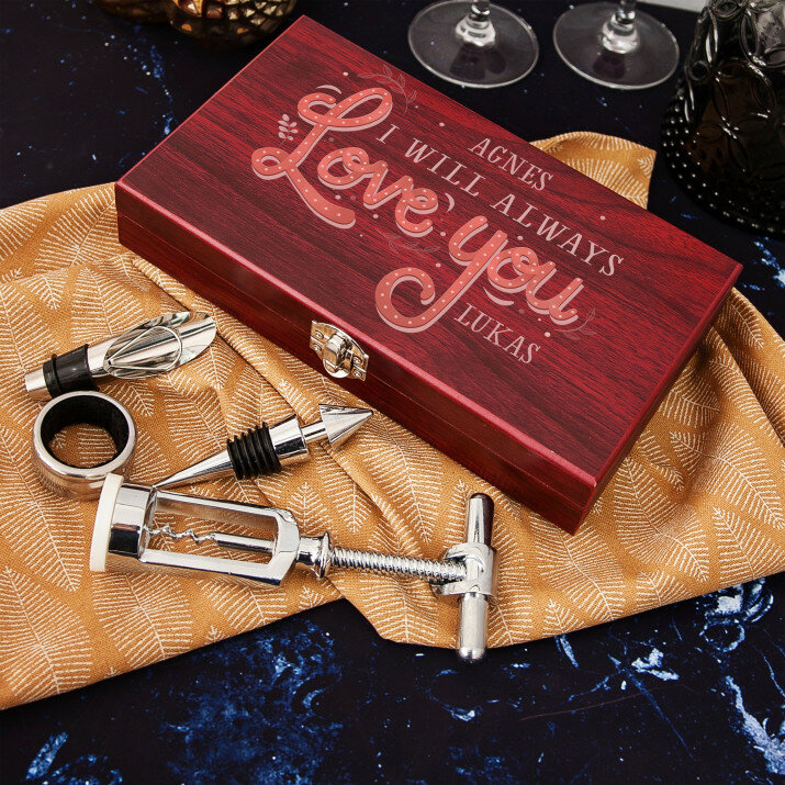 Jeder Weinliebhaber wird sich in diesem Set verlieben! Ein solches Geschenk ist perfekt für ein Jubiläum, eine Hochzeit und viele andere Anlässe. Abende mit Ihrem Lieblingswein werden noch angenehmer!Anfertigung