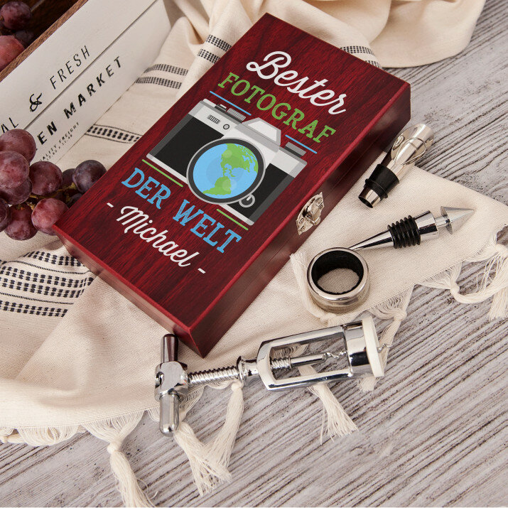 Jeder Weinliebhaber wird sich in diesem Set verlieben! Ein solches Geschenk ist perfekt für ein Jubiläum, eine Hochzeit und viele andere Anlässe. Abende mit Ihrem Lieblingswein werden noch angenehmer!Anfertigung