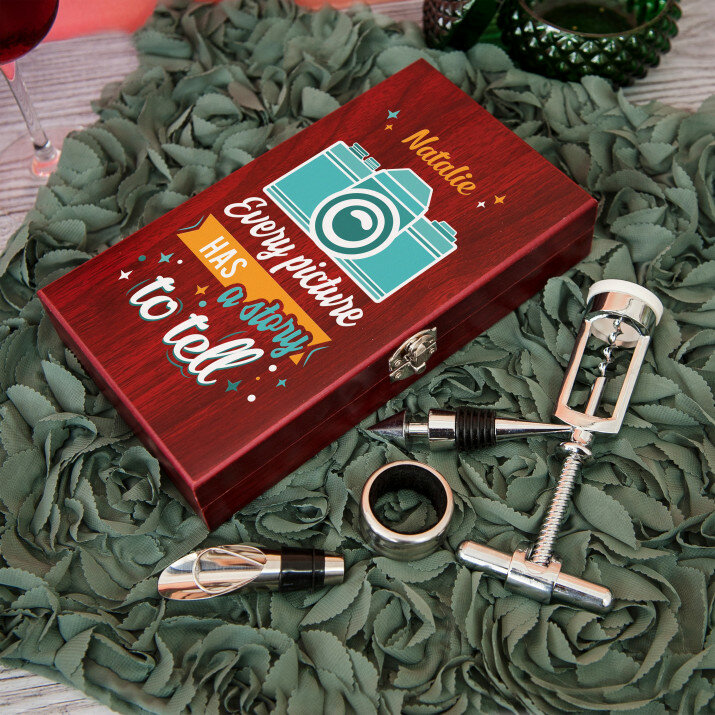 Jeder Weinliebhaber wird sich in diesem Set verlieben! Ein solches Geschenk ist perfekt für ein Jubiläum, eine Hochzeit und viele andere Anlässe. Abende mit Ihrem Lieblingswein werden noch angenehmer!Anfertigung
