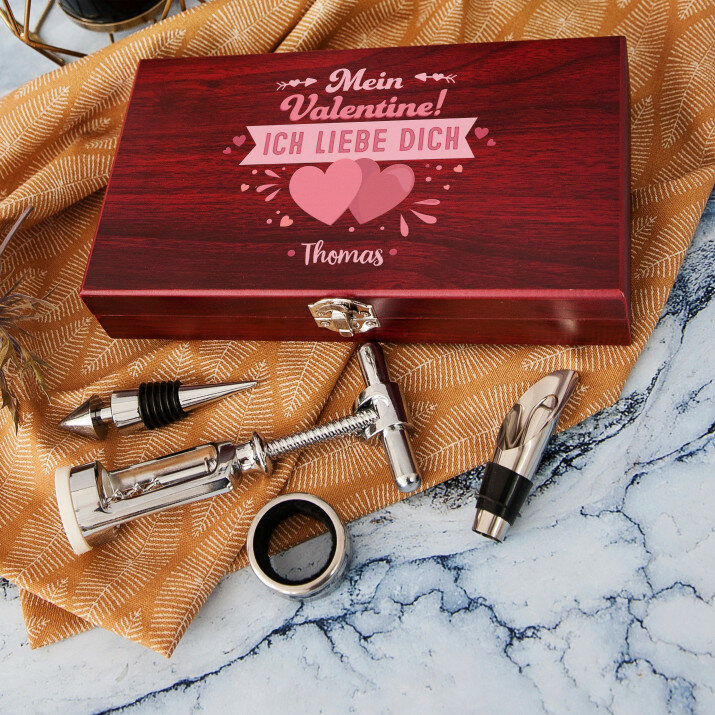 Jeder Weinliebhaber wird sich in diesem Set verlieben! Ein solches Geschenk ist perfekt für ein Jubiläum, eine Hochzeit und viele andere Anlässe. Abende mit Ihrem Lieblingswein werden noch angenehmer!Anfertigung