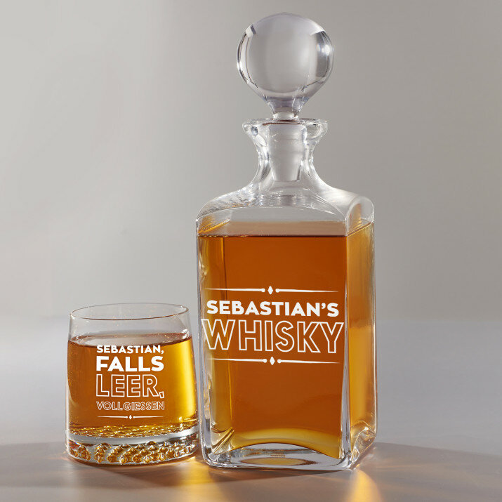 Diese ausgesuchte Karaffe mit dem Namen des oder der Beschenkten ist die perfekte Geschenkidee für einen Whisky-Fan.