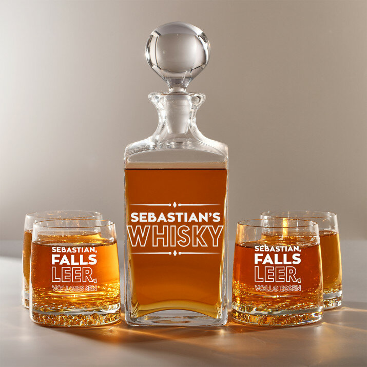 Set mit gravierter Karaffe und Whisky-Gläsern in vier Optionenerhältlich: