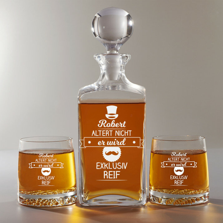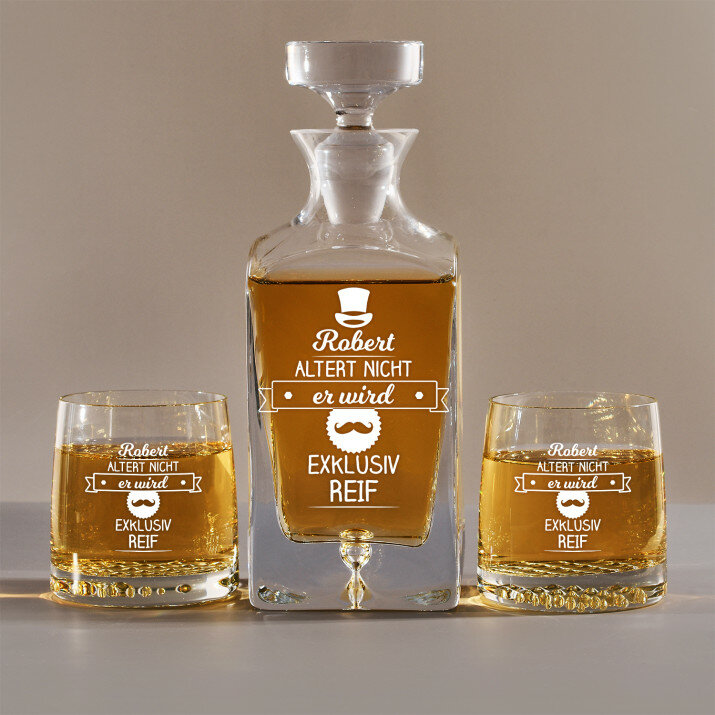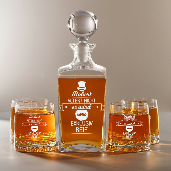 Set mit gravierter Karaffe und Whisky-Gläsern in vier Optionenerhältlich:Karaffe + 1 Glas