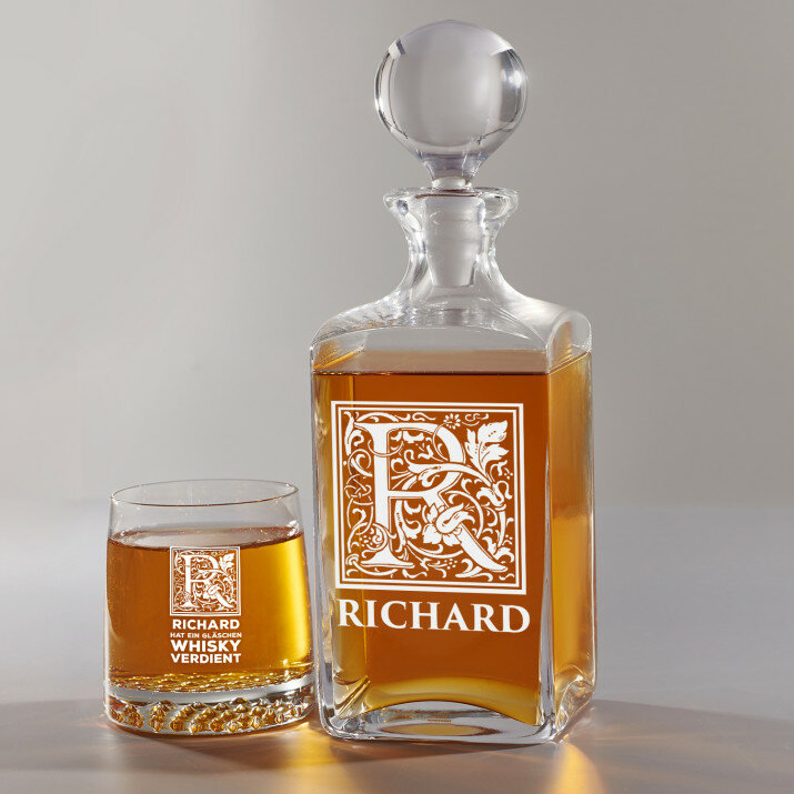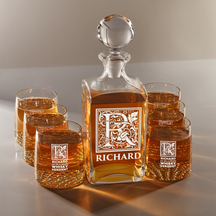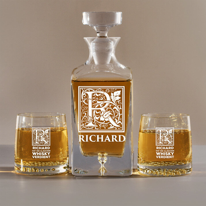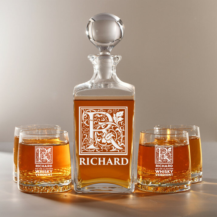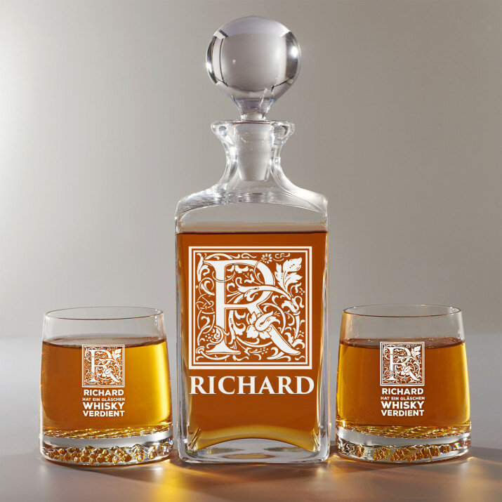 Set mit gravierter Karaffe und Whisky-Gläsern in vier Optionenerhältlich: