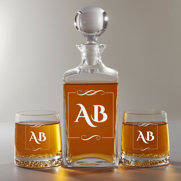 Set mit gravierter Karaffe und Whisky-Gläsern in vier Optionenerhältlich:Karaffe + 1 Glas