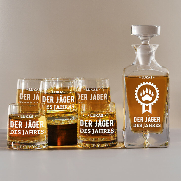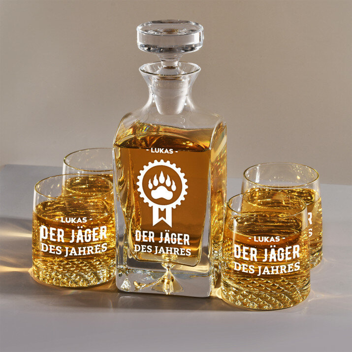 Set mit gravierter Karaffe und Whisky-Gläsern in vier Optionenerhältlich:Karaffe + 1 Glas
