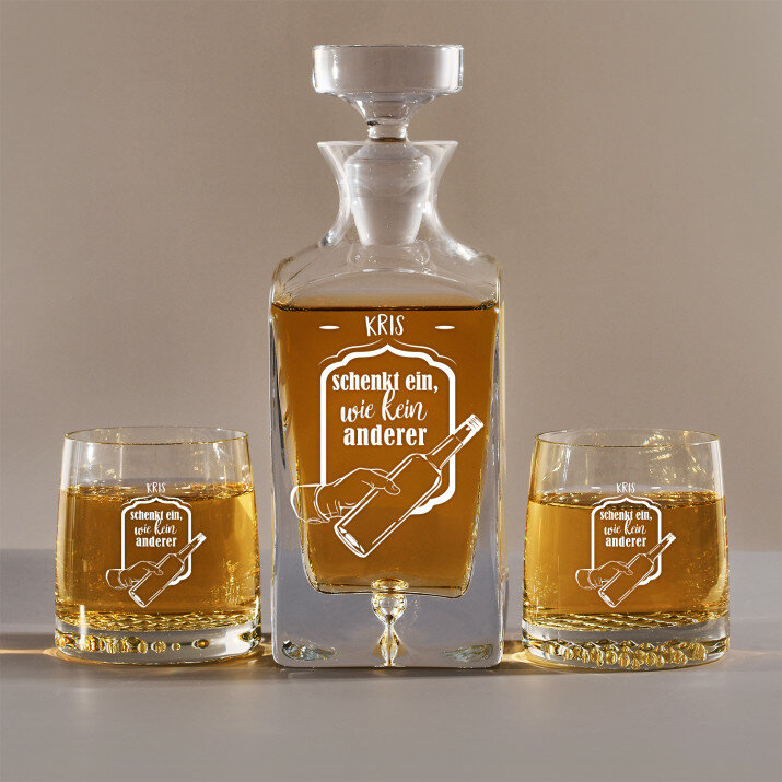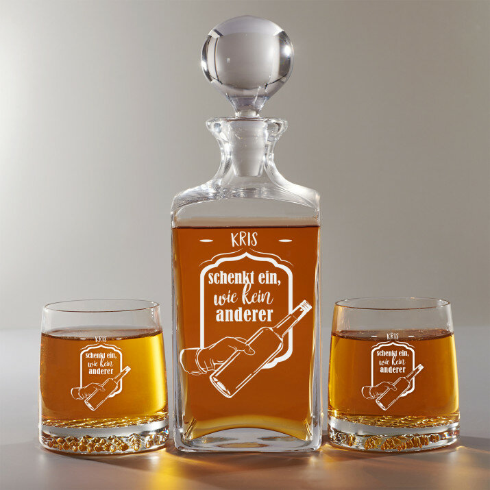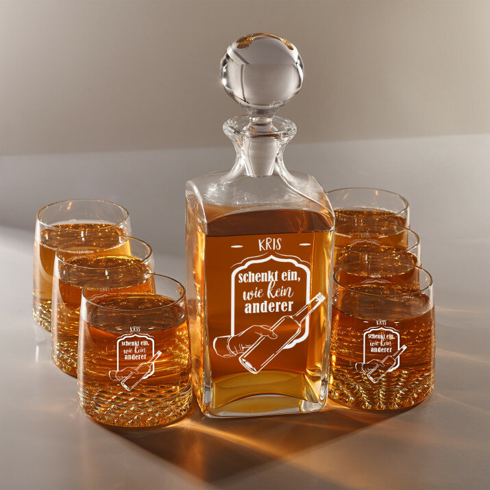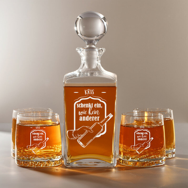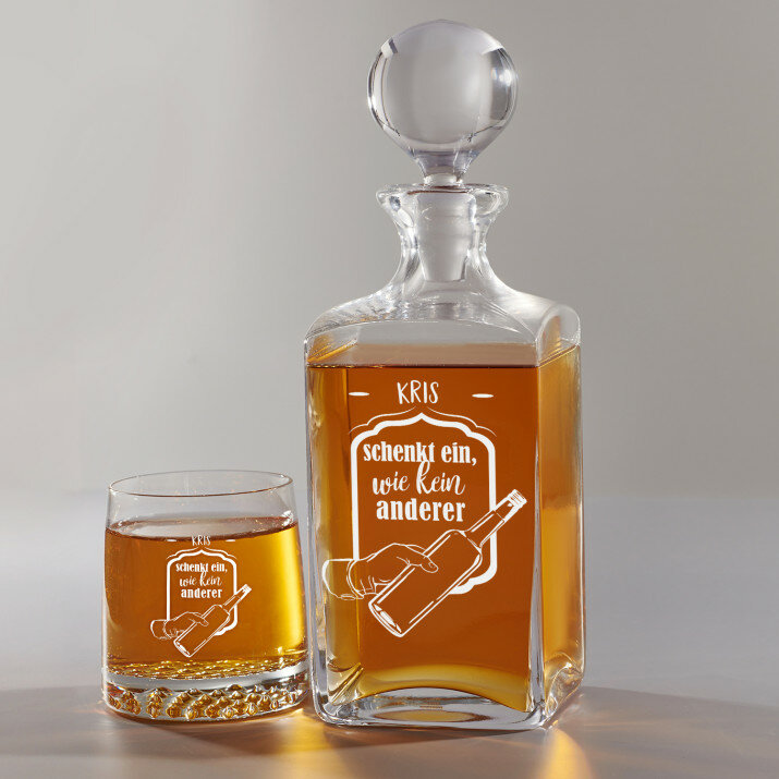 Set mit gravierter Karaffe und Whisky-Gläsern in vier Optionenerhältlich:Karaffe + 1 Glas